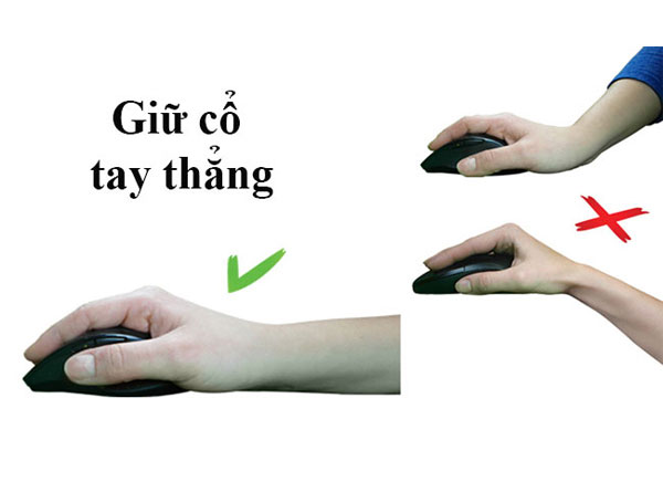 Hãy nhớ khi sử dụng chuột, phải giữ cho cổ tay thẳng và di chuyển chuột bằng cánh tay chứ không phải cổ tay, giống như trong ảnh sau: